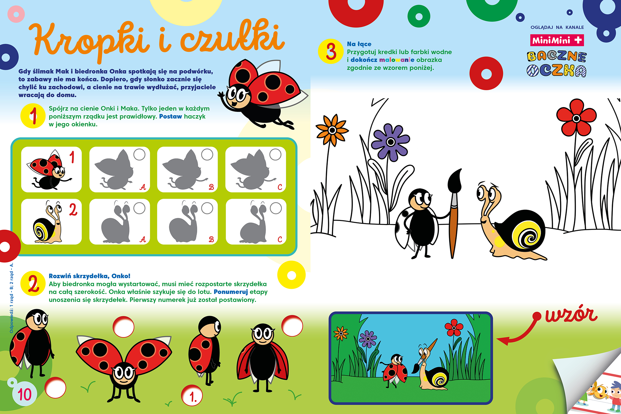 Oprócz rybki i jej podwodnych przyjaciół, poznasz dzieci, Anię i Piotrusia, do których domu przez przypadek trafia rybka MiniMini. Czy uda jej się wrócić do oceanu? Musisz to sprawdzić! Z bohaterami kreskówki „Baczne oczka” rozwiążesz kilka zadań na spostrzegawczość. Potem czas na wybryki baranka Shauna i jego paczki. Na kolejnych stronach magazynu bardzo małe kreaturki poznają nowe smaki, a ty wraz z nimi. Weź też udział w wyścigu przez płotki. Mamy także w tym wydaniu kilka ciekawostek o kolczastych cudakach, jakimi są jeżowce. Na koniec konkurs ze wspaniałymi nagrodami. Jest ich aż 40!!! Warto wziąć w nim udział!